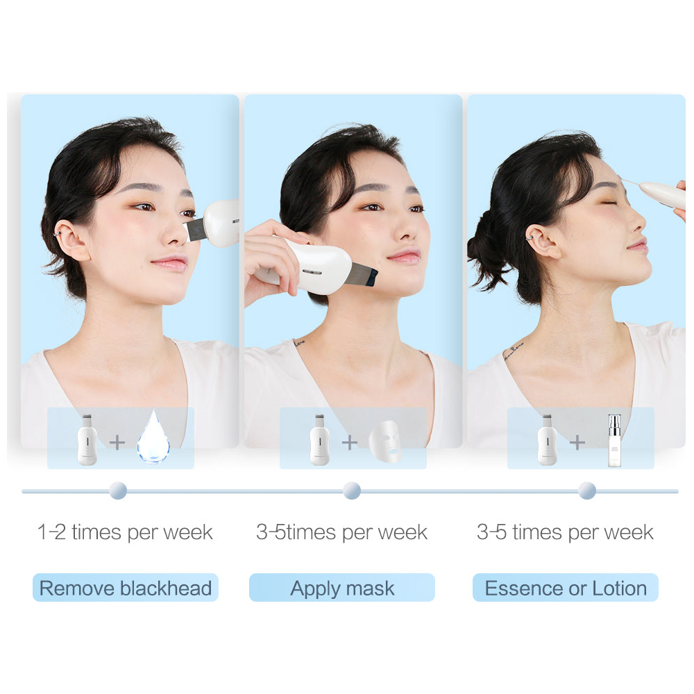 Produces ultrasonic vibrations up to 35,000 HZ per second to efficiently cleanse and exfoliate the skin, removes blackheads, oils, flaky, and dead skin.